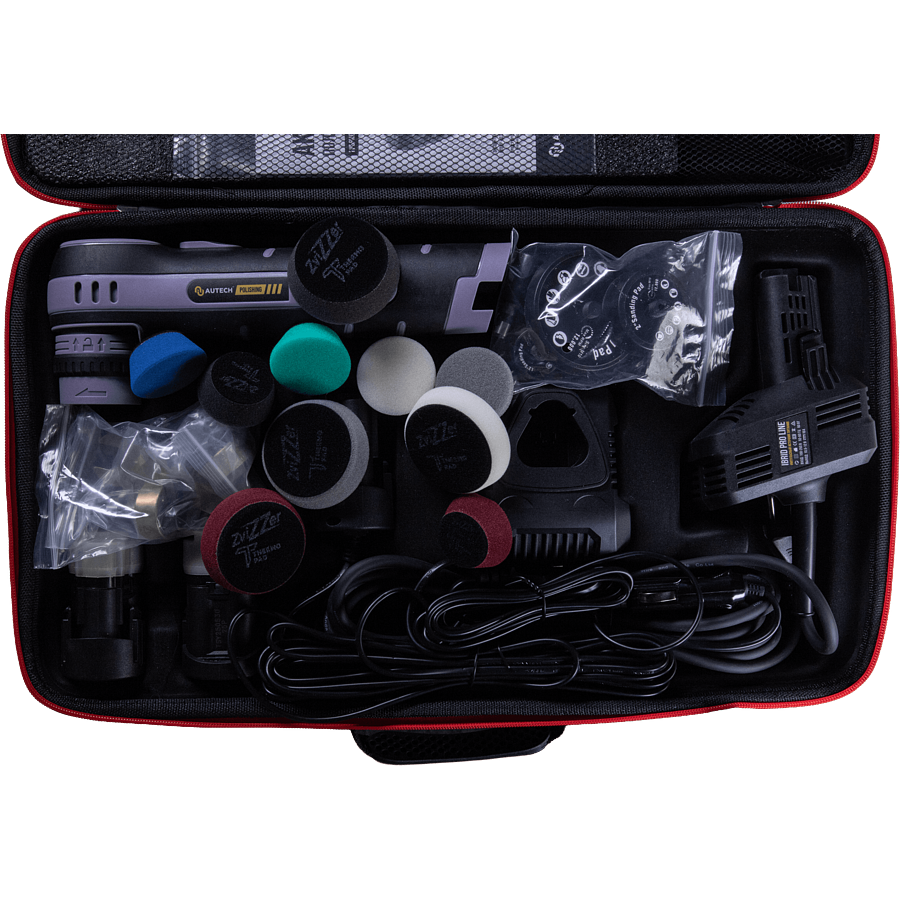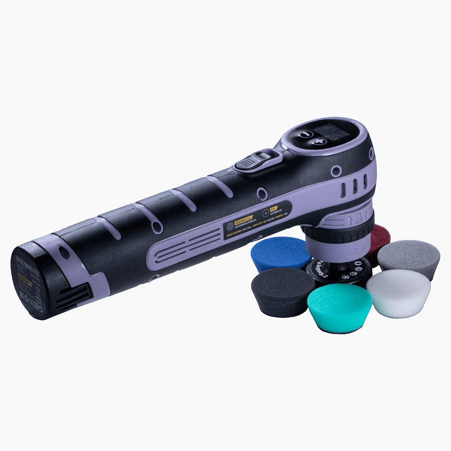 - Абсолютная автономность: расширенный набор Extended Kit позволяет работать от аккумуляторов, от розетки 220В через длинный кабель или напрямую от прикуривателя 12В — процесс полировки не встанет из-за севшей батареи.